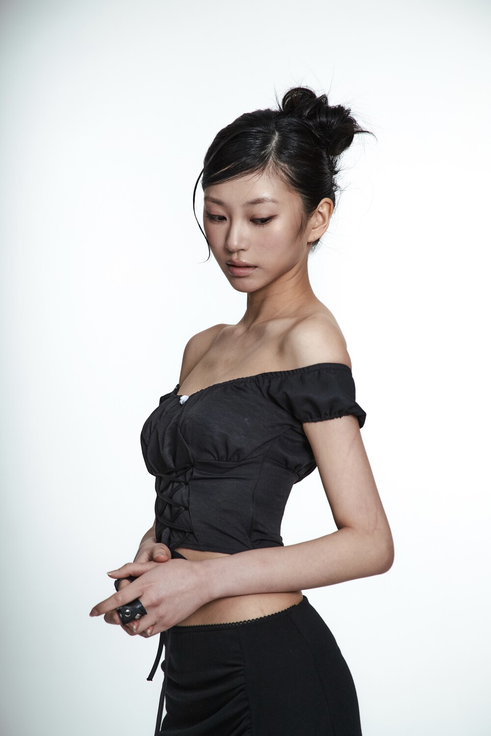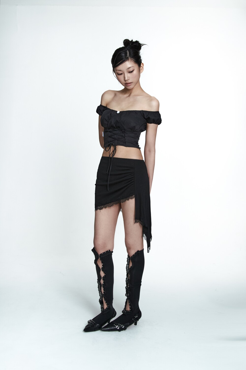 FLOWER OFF-SHOULDER CORSET TOP (BLACK)