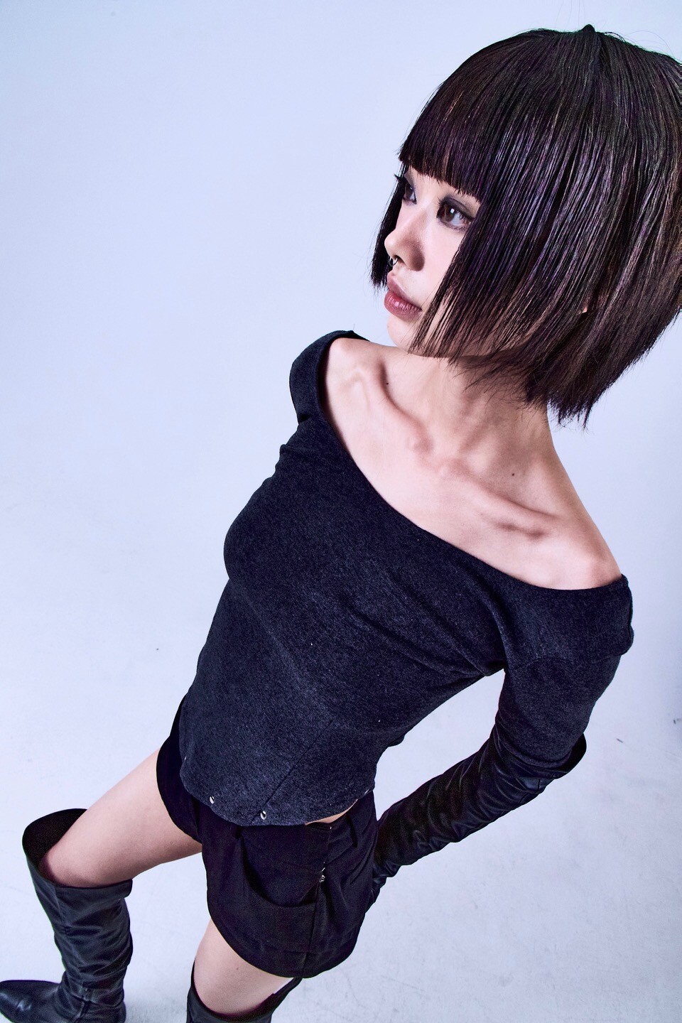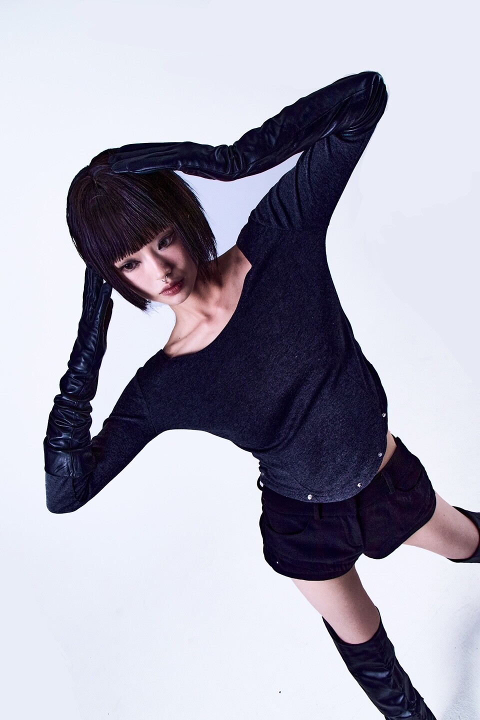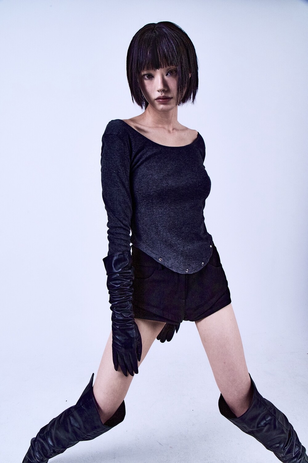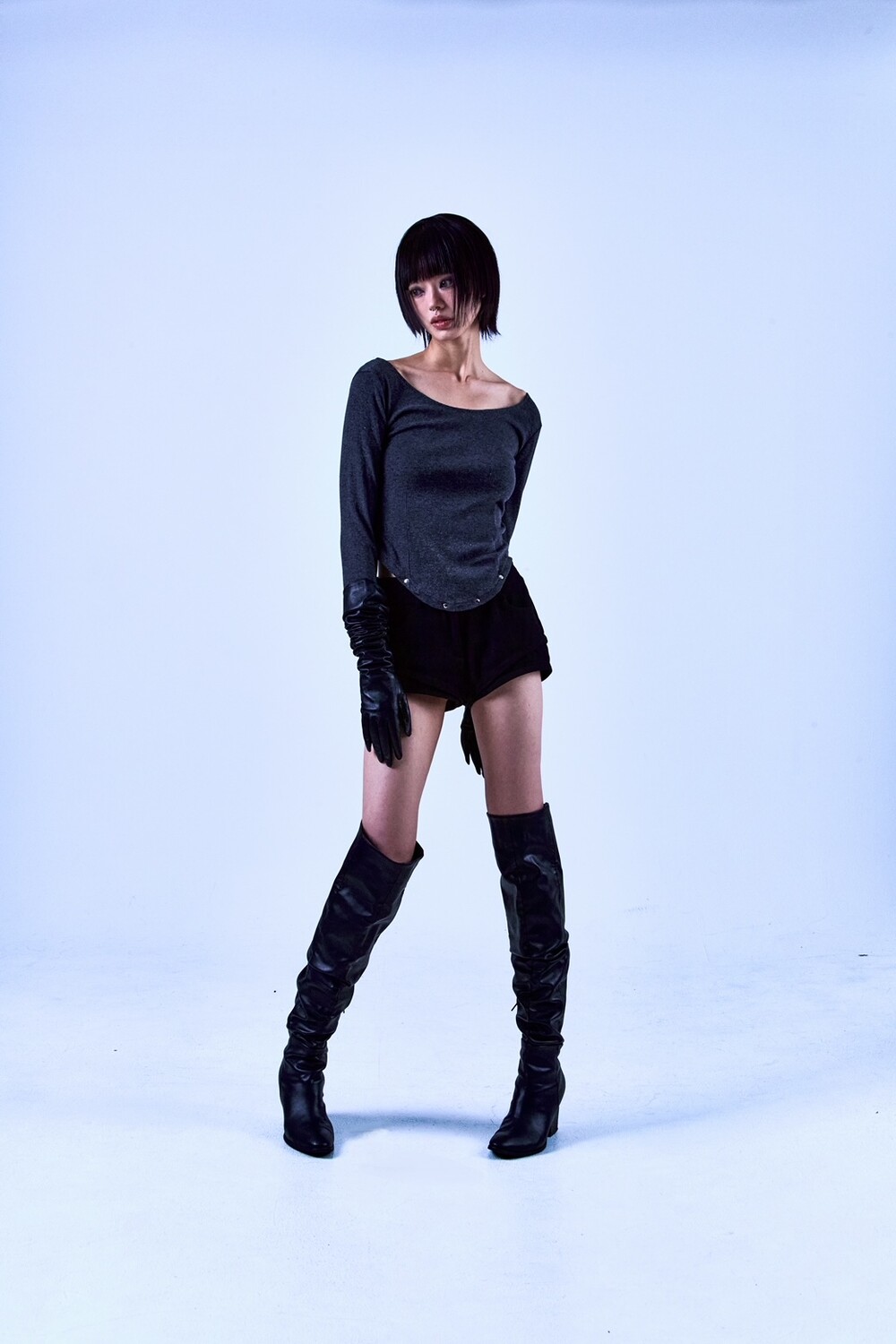 6 STUD CORSET T-SHIRT GRAY